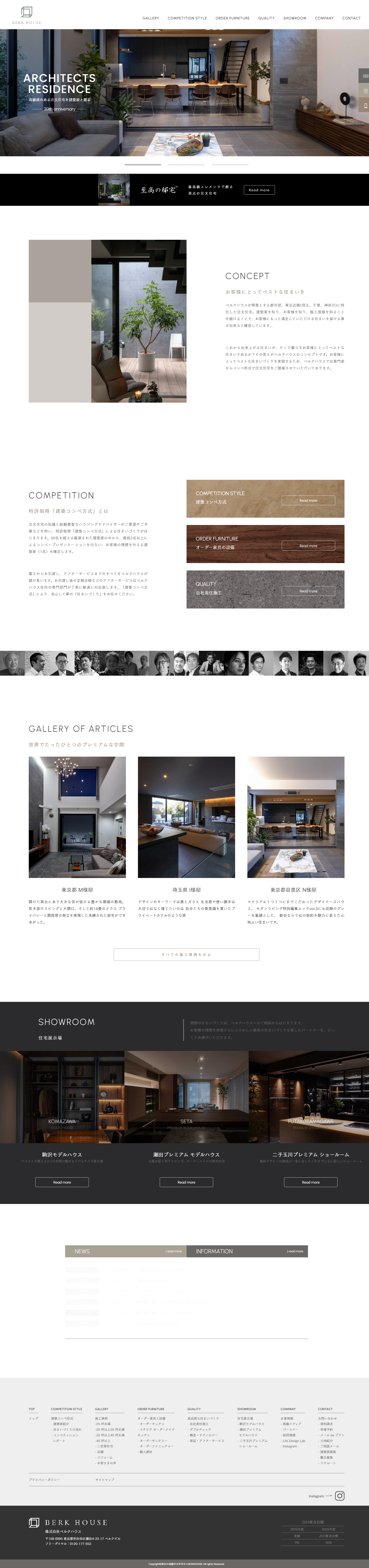 東京都内で注文建設事業を展開される株式会社ベルクハウス様のホームページを制作。白ベースの清潔感と高品質なデザイン。